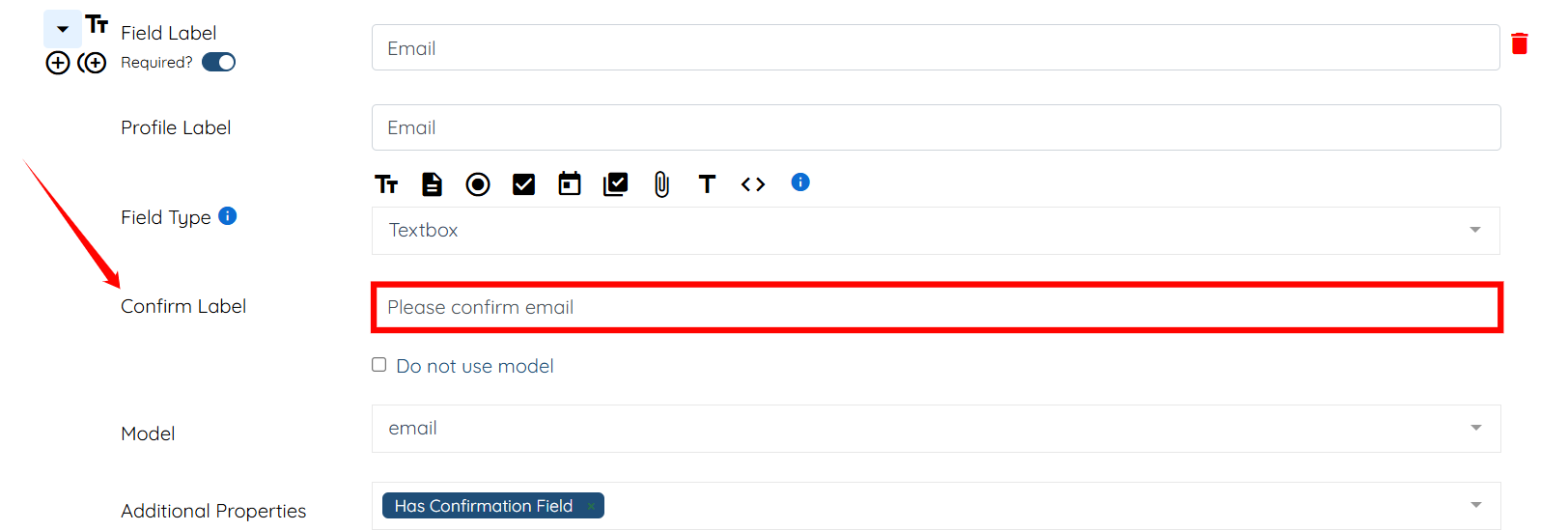 Step 5: Enter the text for the Confirm Label field, such as “Please confirm email.”