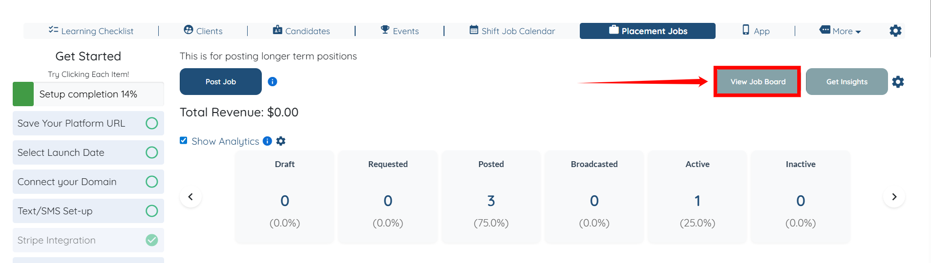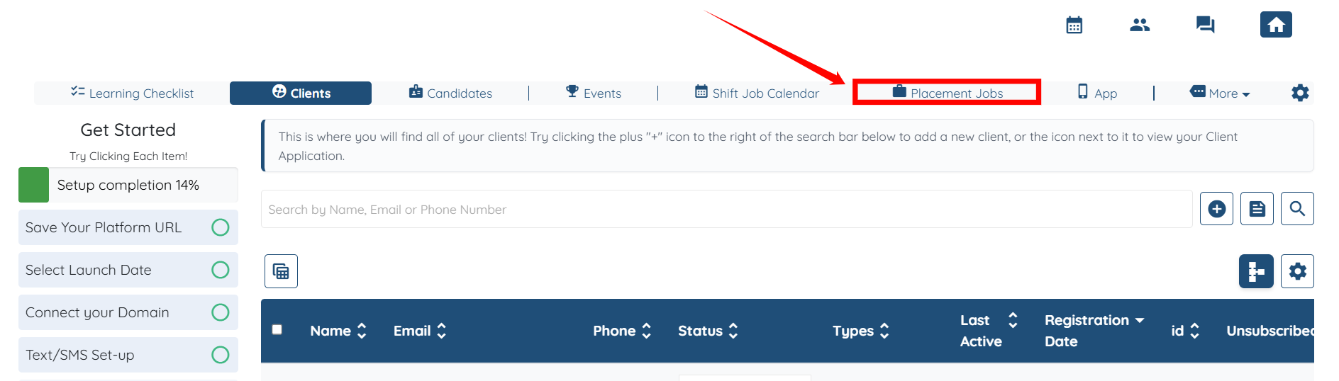 Step 1: Log in to your agent dashboard, then click on the Placement Jobs option in the top navigation bar.