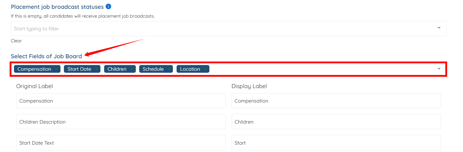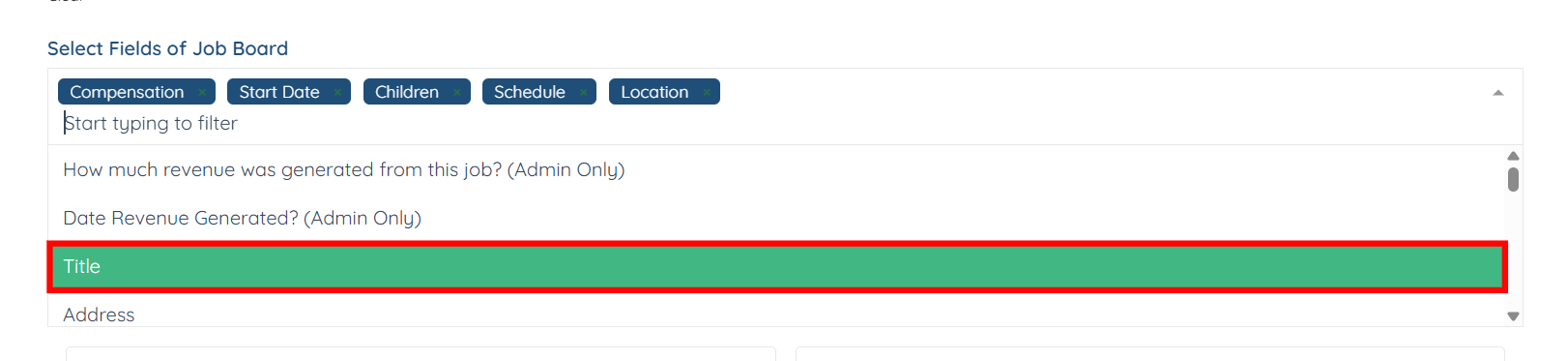 Step 4: Locate the Select Fields of the Job Board option and click the box to open the dropdown.
