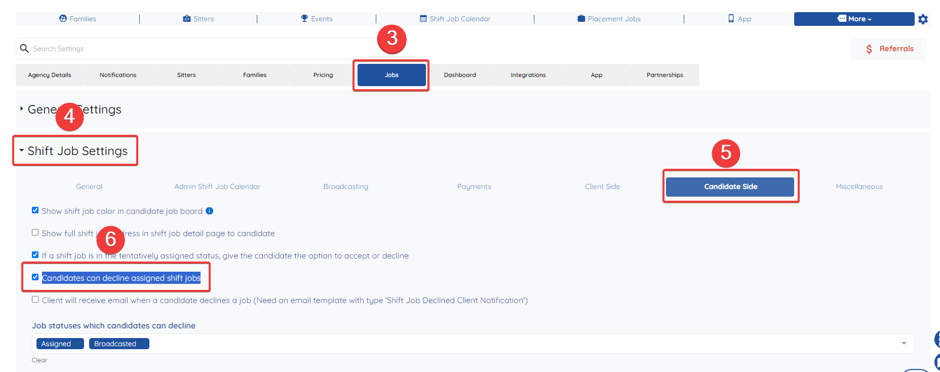 6- Check/Uncheck the box to Enable/Disable the option for Candidates to Decline an assigned shift job