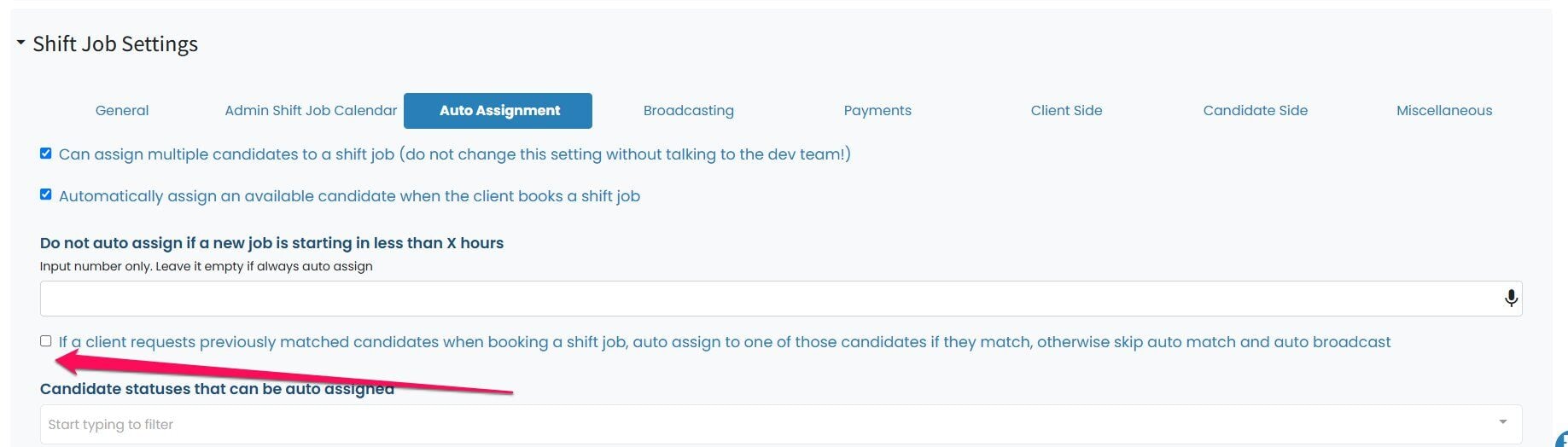 Go to Shift jobs->Auto Assignment
