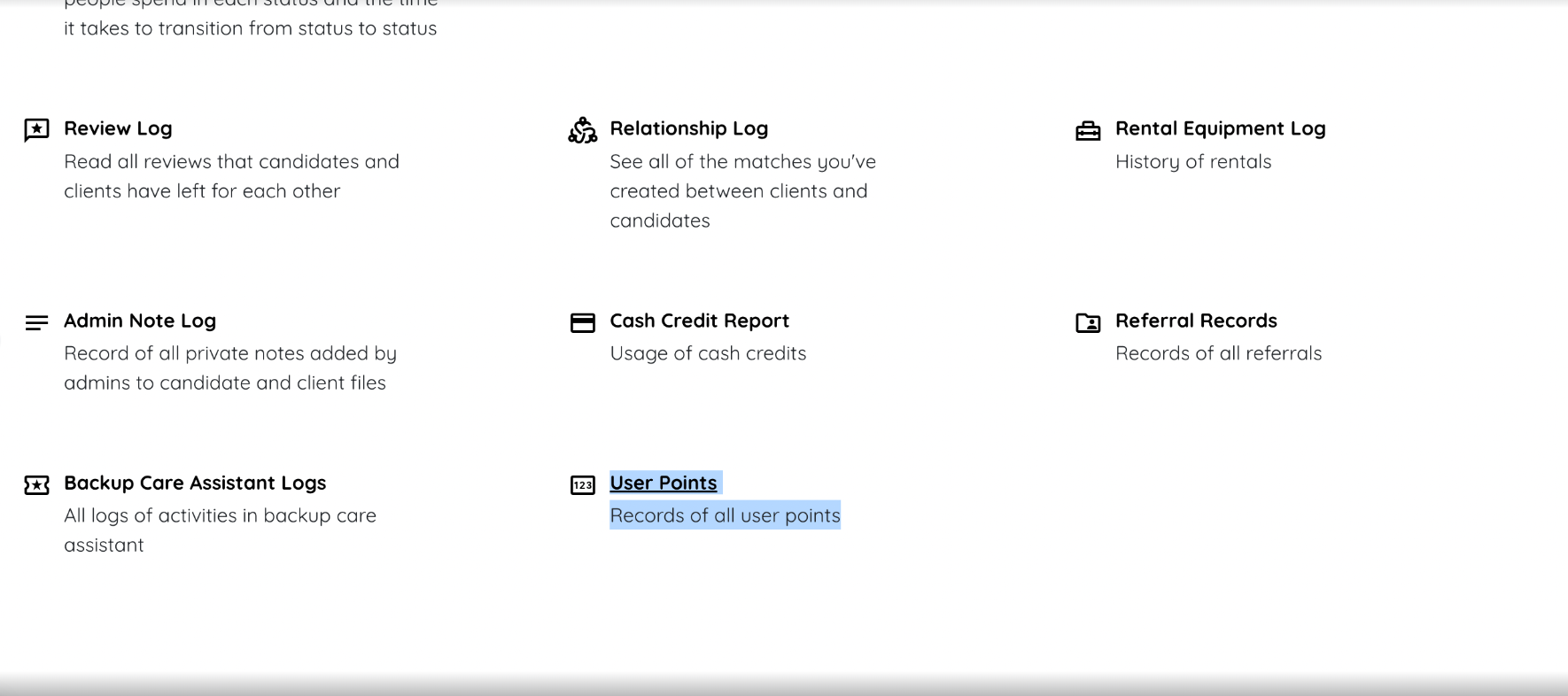 Step 1:Click MOREStep 2: Select ALL LOGSStep 3: Click on USER POINTS