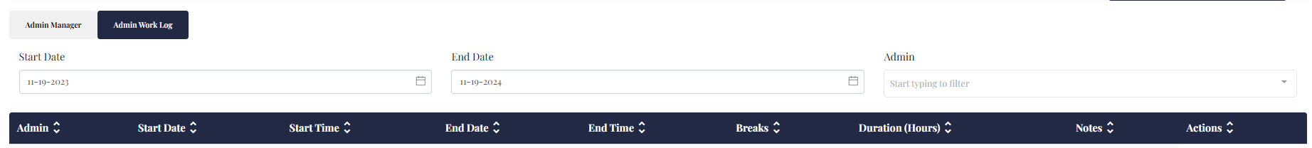 Step 1: Go to MOREStep 2: Click on AdministratorsStep 3: Click on Admin Work Log