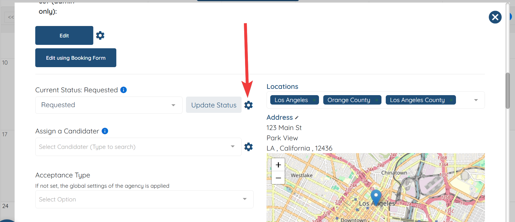 - Click on the gear icon right next to the shift job status change drop-down