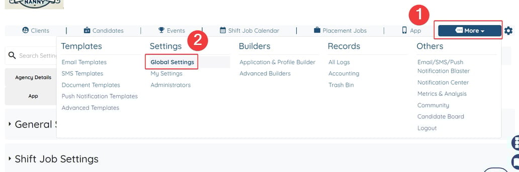 Navigate to More → Global Settings