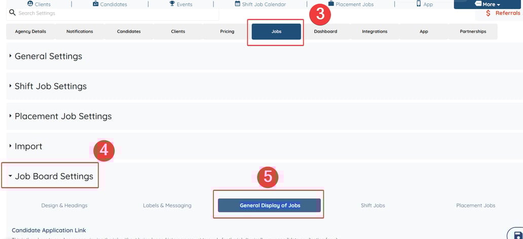 Select Jobs → Job Board Settings → General Display of Jobs
