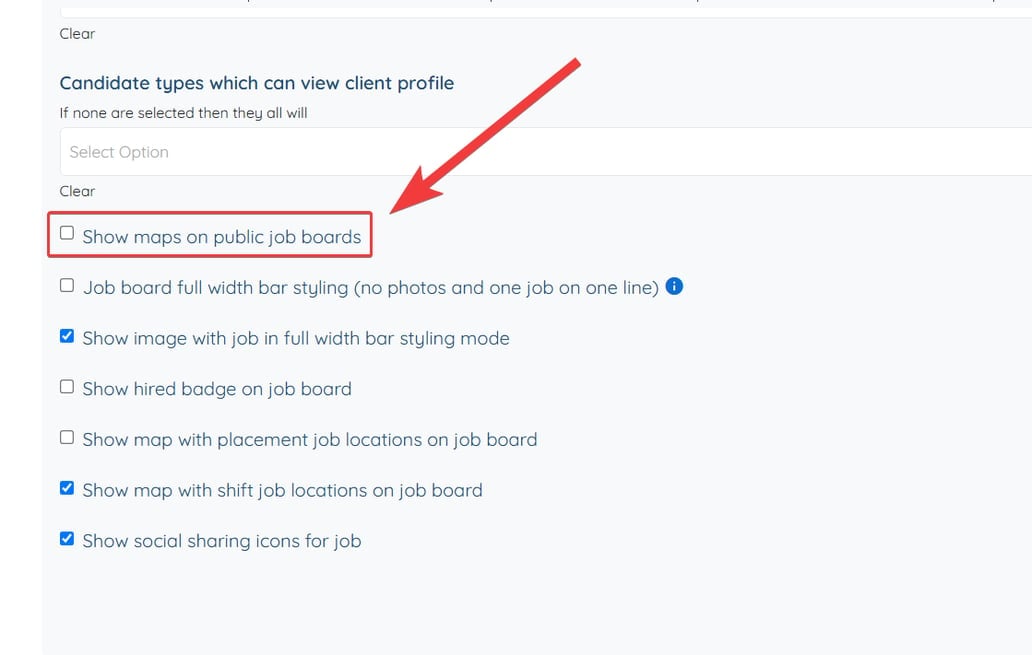 Scroll to the setting "Show maps on public job boards"