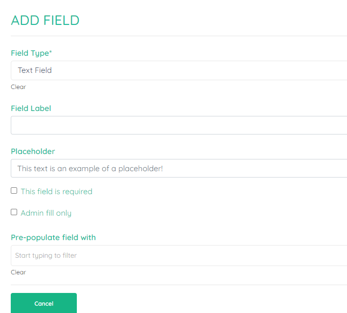 Then select which type of field, who you want to be able to fill it out, if it is required
