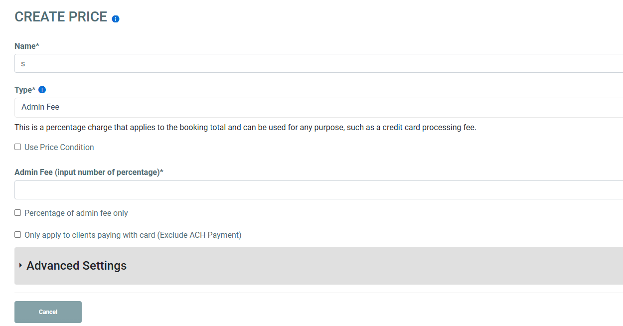 Then in the Adin fee area put in the percentage amount. Do not put the % in there.