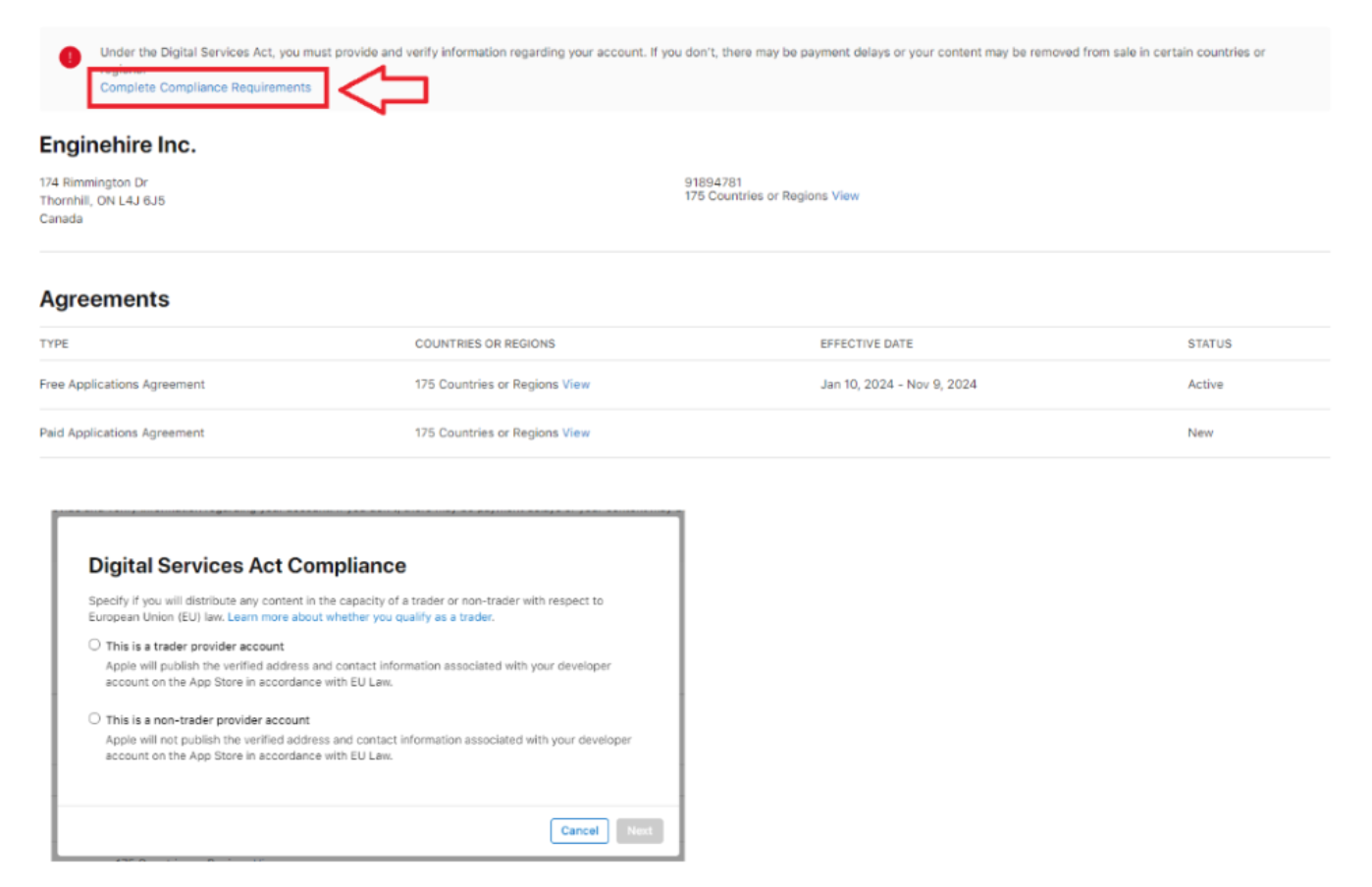 Under the EU’s Digital Services Act, Apple now requires all traders distributing apps on the App Store to verify and display their contact information.