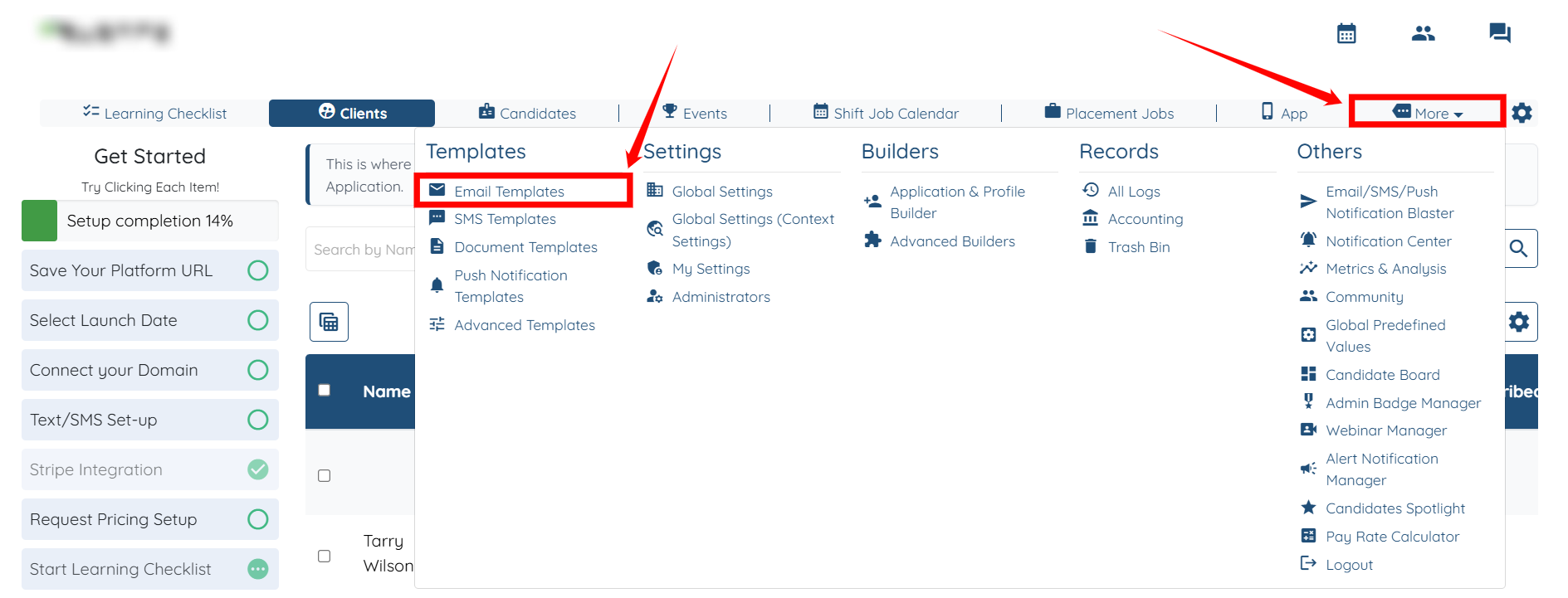 There is a dedicated area in your dashboard where you can manage all of your email templates. To access this navigate to More → Email Templates