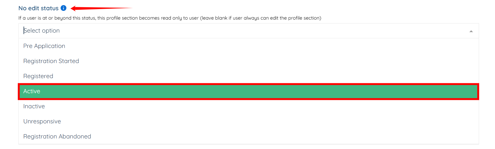 Step 6: Under the “No edit status” field, you can select the status at which the section should become read-only for the user.