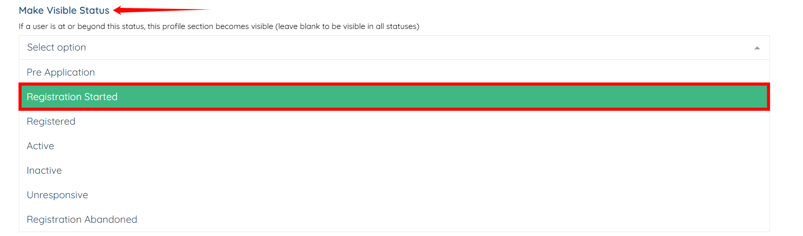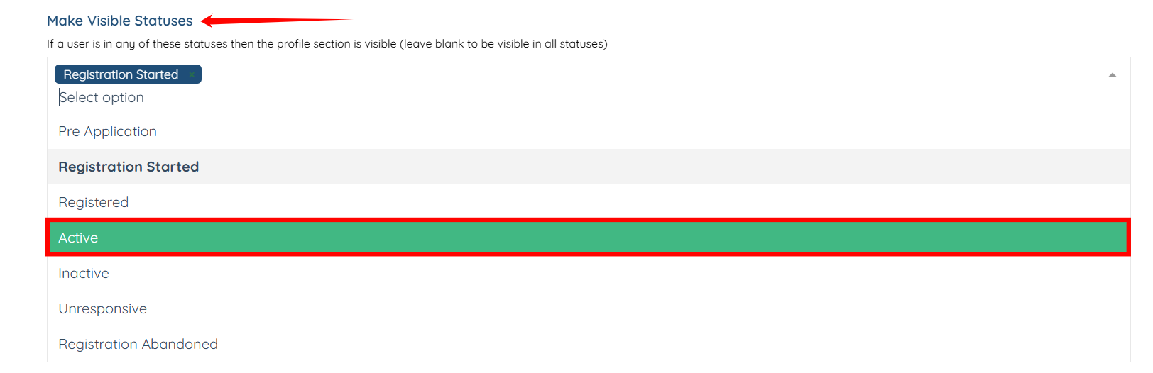 Step 5: Under the “Make Visible Statuses” field, select the statuses for which the profile section should be visible.