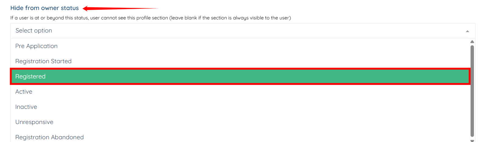 Step 7: Under the “Hide from owner status” field, you can select the status at which the section becomes hidden.
