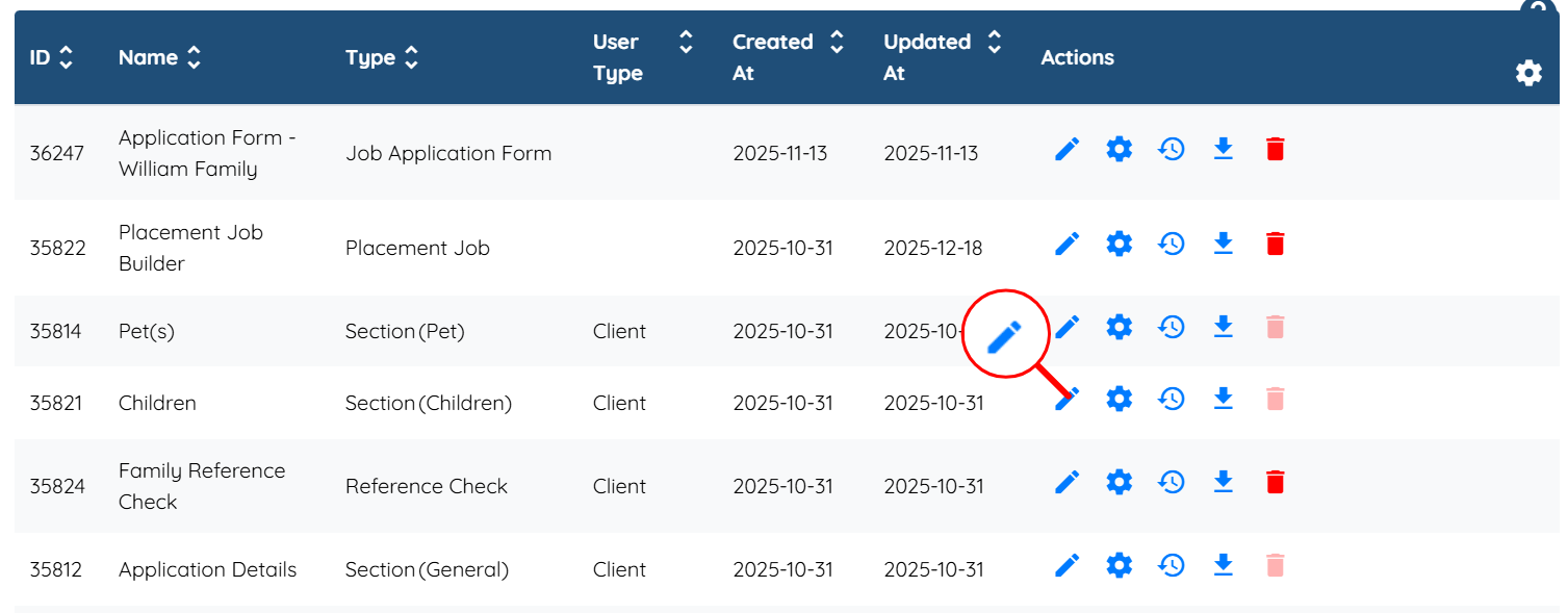 Step 2: Locate the section whose visibility you want to control, and then click the corresponding pencil icon to open that section.