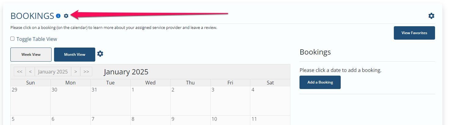 Once in a client's profile, go to the booking section and click the gear icon of the booking section next to the title of the section.