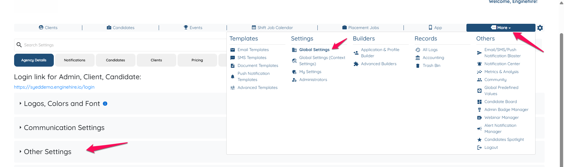 Go to more-->Global Settings-->Agency Details--> Other settings.