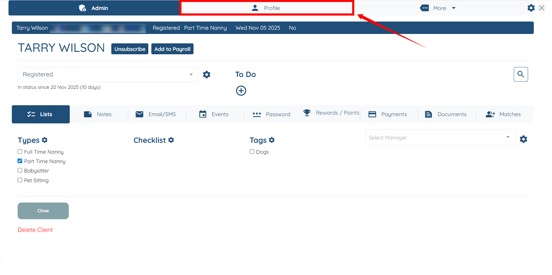 Step 2: Click the Profile tab shown in the screenshot below.