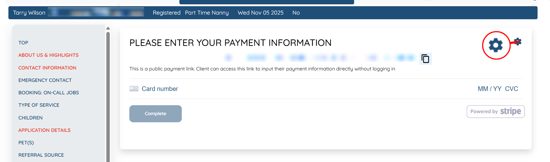 Step 4: Click the Gear icon within the Payment Information block.