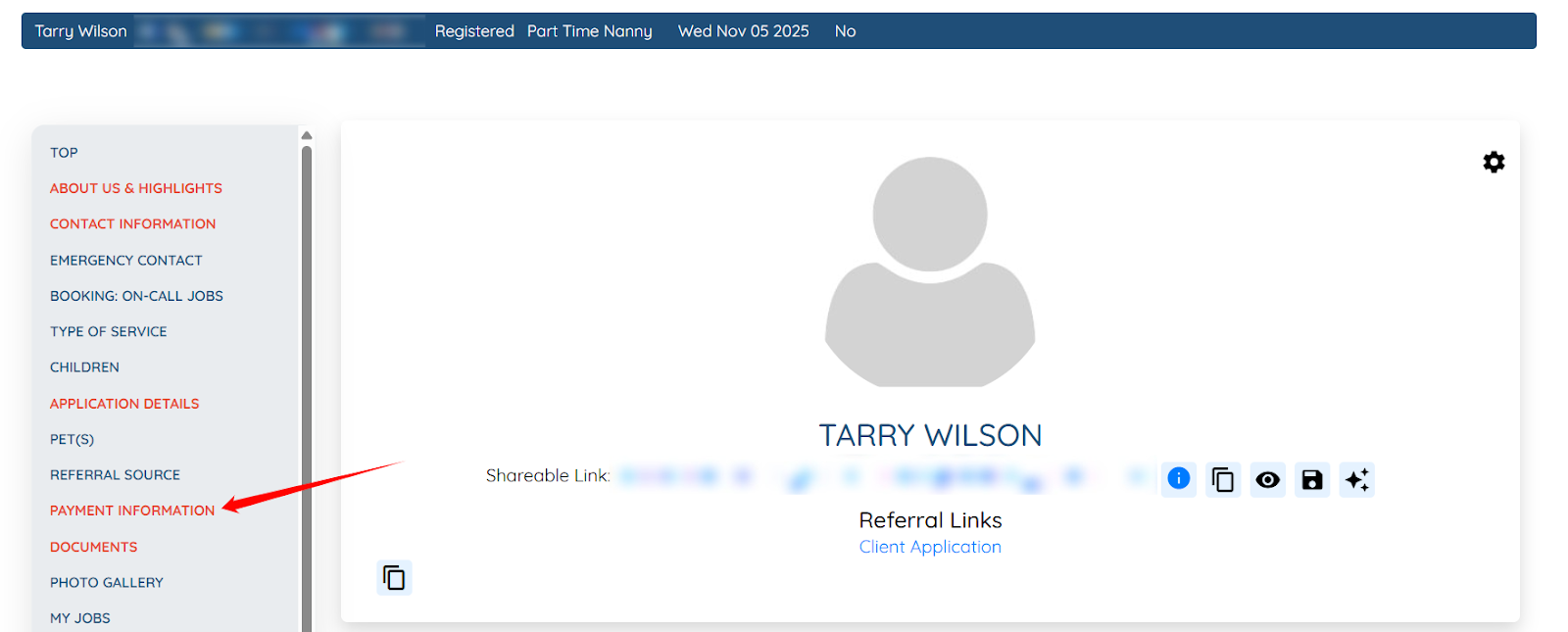 Step 3: Click on the PAYMENT INFORMATION option located in the left navigation bar.