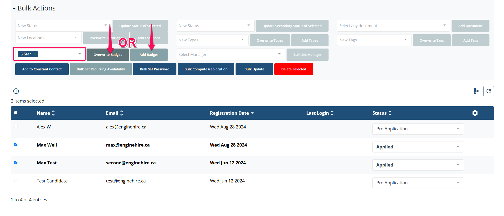 Mass "Badges" Update - Badges are used to showcase the skills / highlights of candidate profile.
