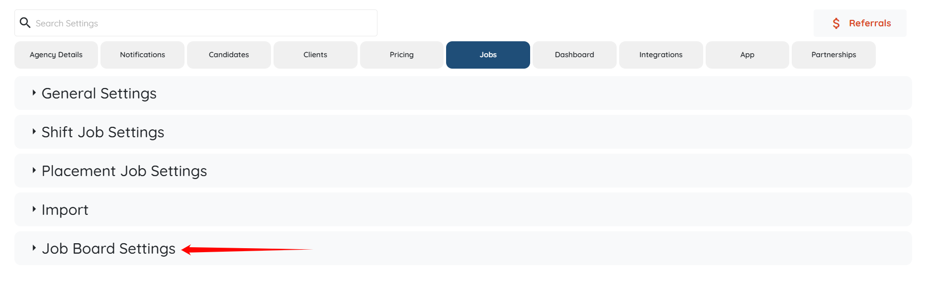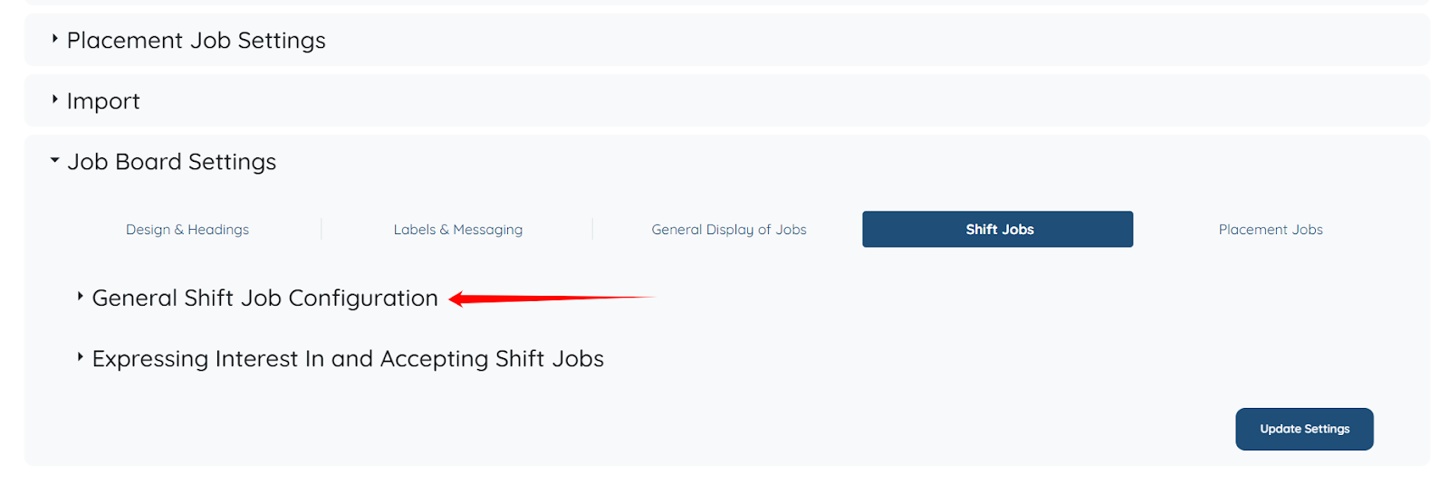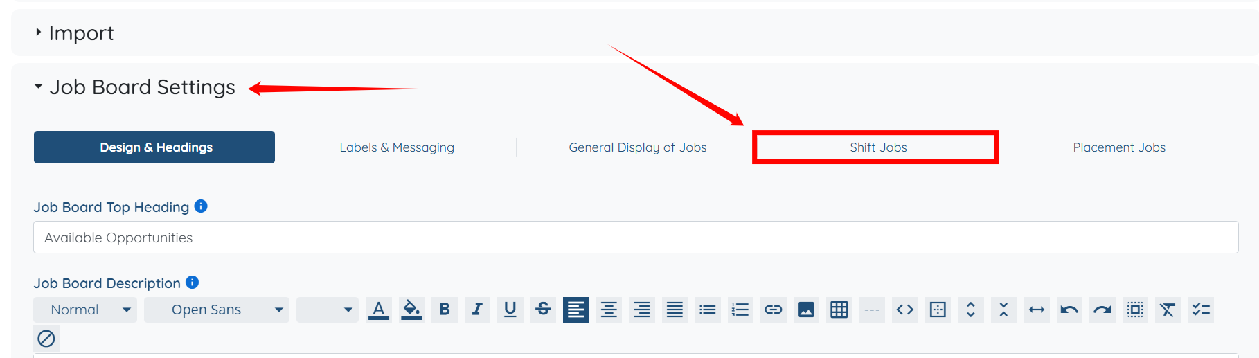 Step 4: Under the Job Board Settings, click the Shift Jobs option as shown in the screenshot.