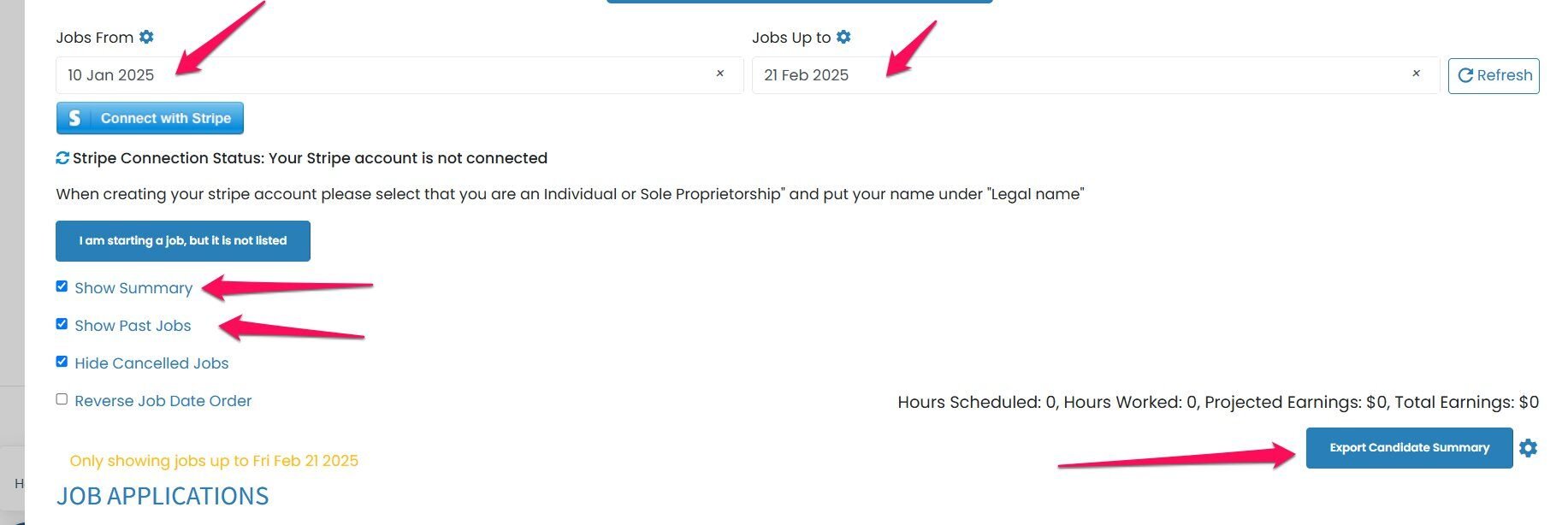 Click on Show Past Jobs