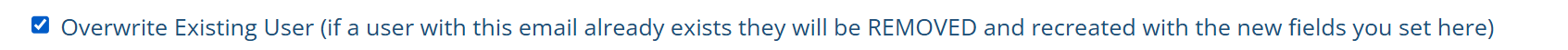 Overwrite Existing User - It will delete all the records with the email and reimport them with all mapped fields exist in this file from system.