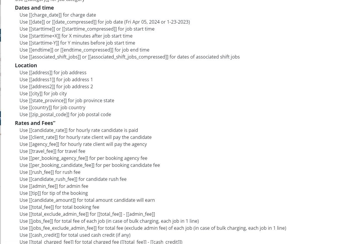 Below where you add the body of the email you can add tags that will auto fill information such as job info or rate info