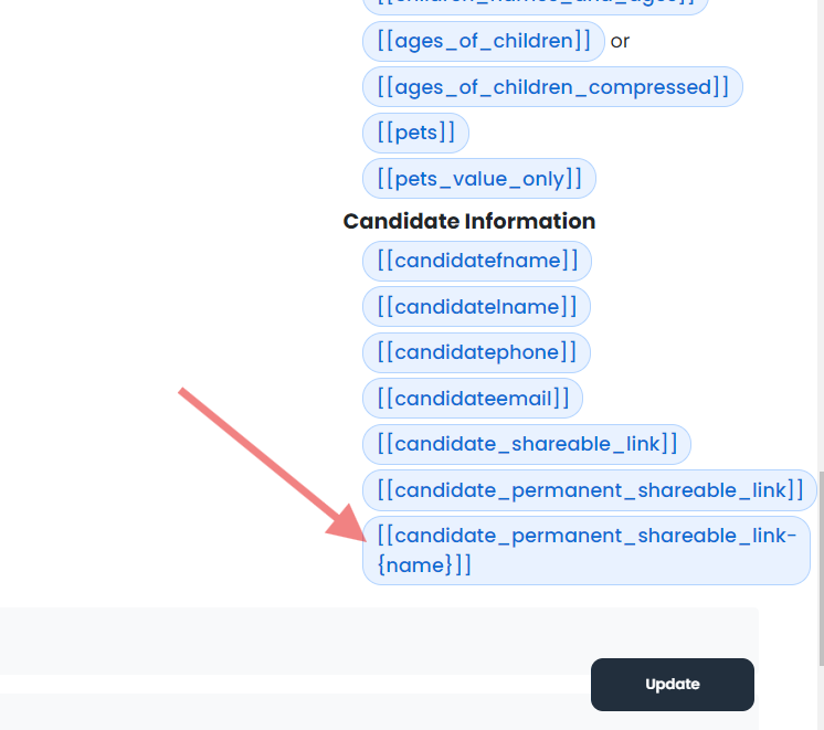 Next, I will go to the job email template, and copy this tag and paste it in to the email