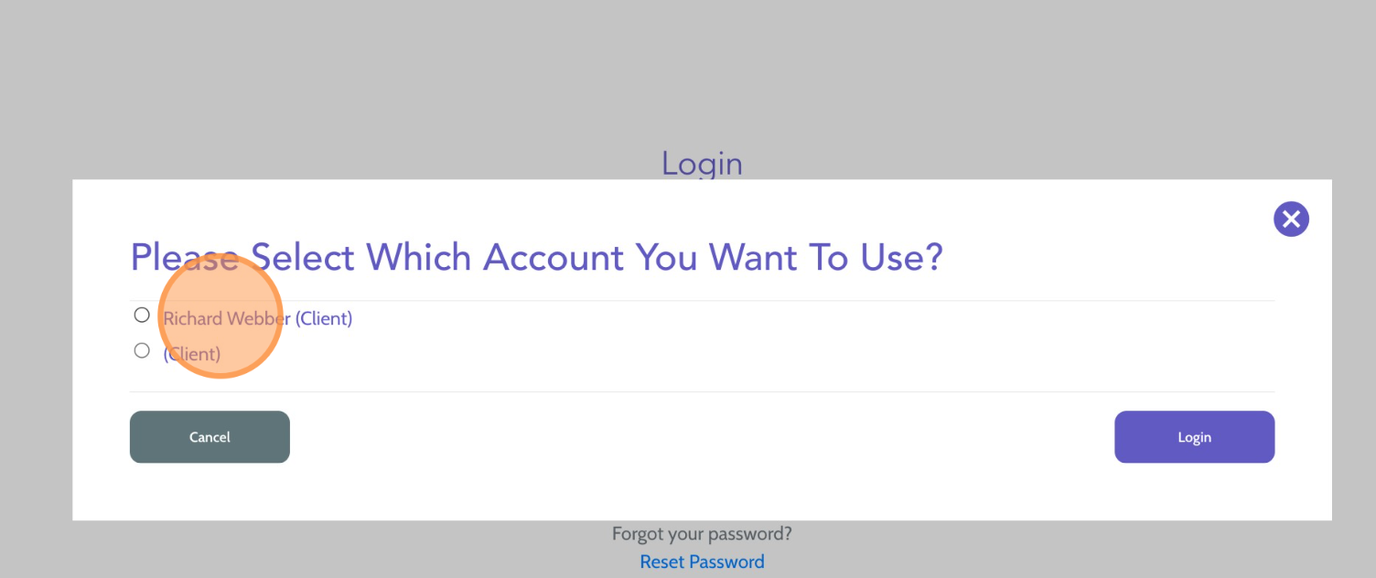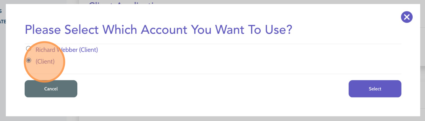 5. When the user logs into their dashboard they will see a prompt for Which account do you want to use?