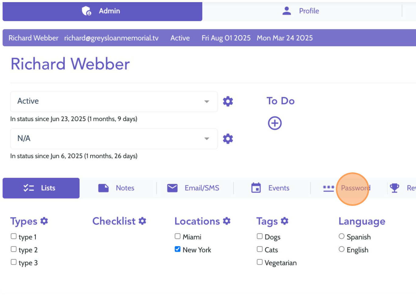 1. Enter the client account that needs a secondary login added, i.e. for a hiring manager and click Password