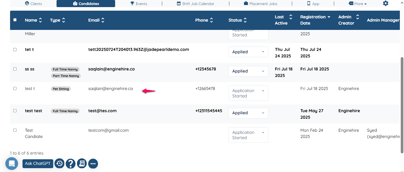 Click on any candidate profile