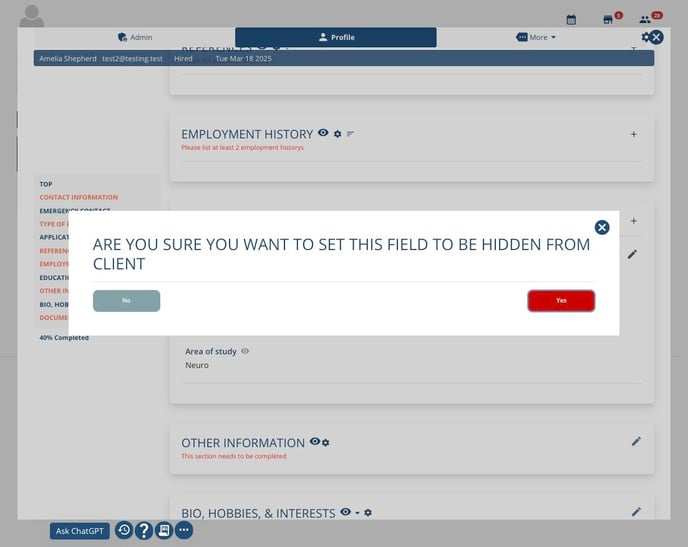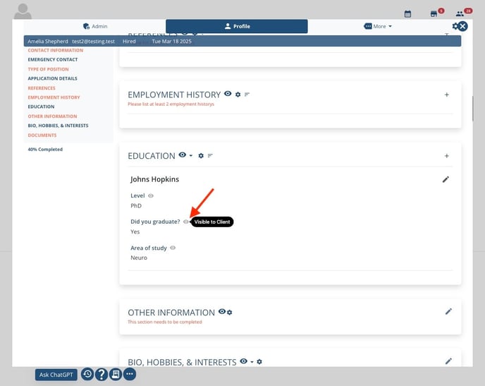 You can customize what a client can see in a candidate’s profile in the following ways: