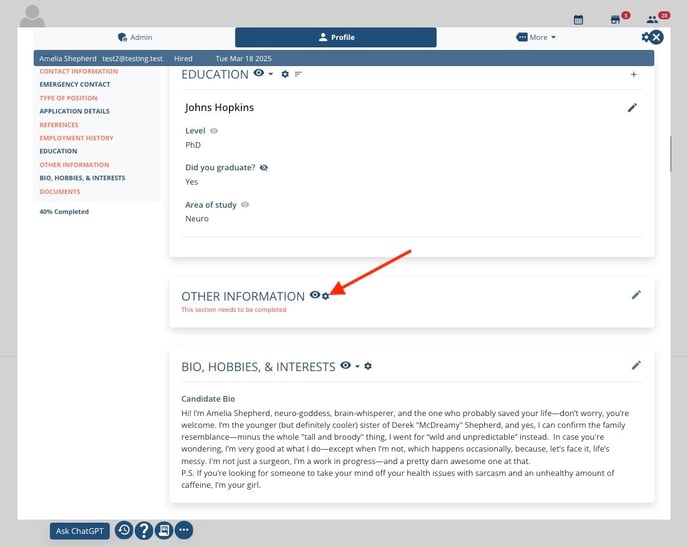 3. Navigate to any Candidate profile and select the My Profile tab.