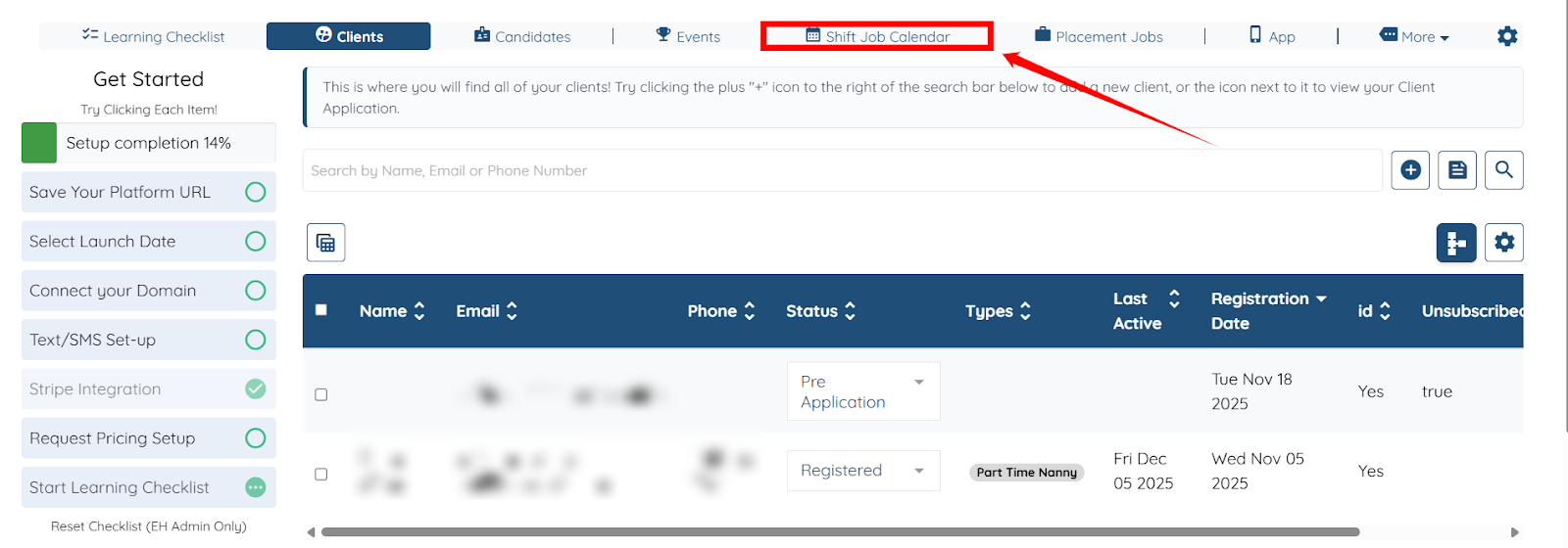 Step 1: Log in to your agent dashboard and click the Shift Job Calendar in the top navigation bar.