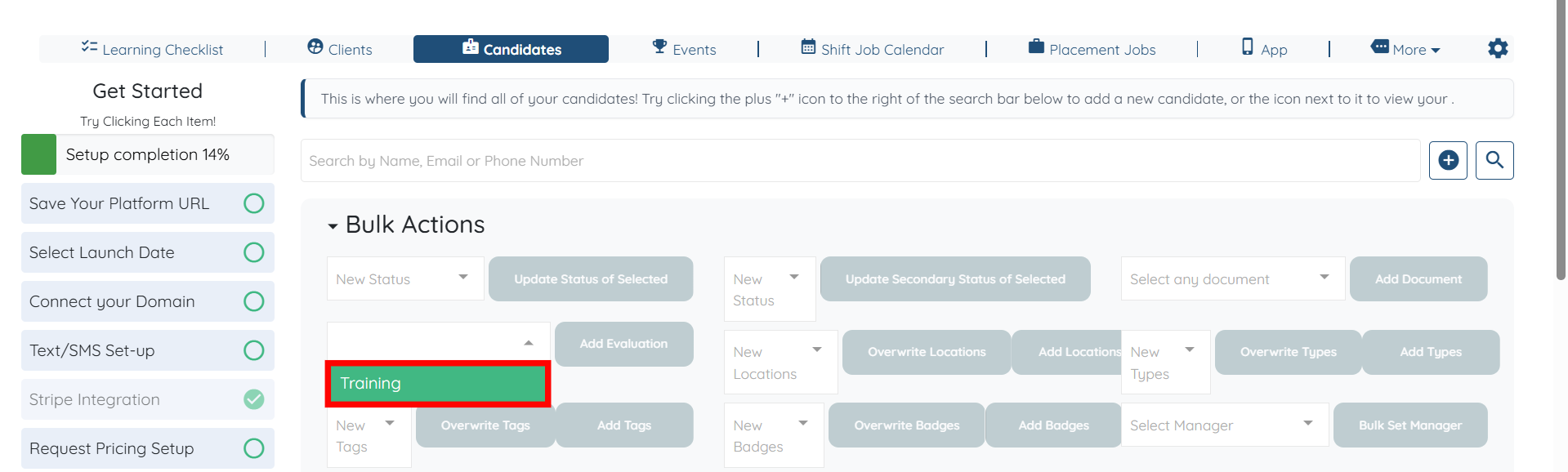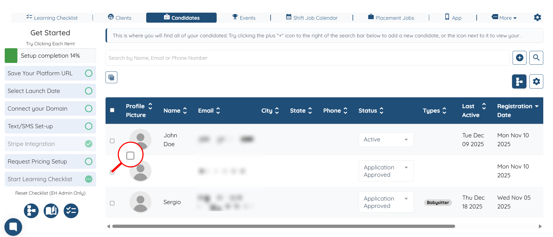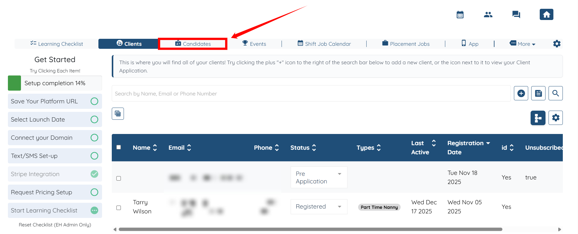 Step 1: Log in to your agent dashboard and click Candidates in the top navigation bar.