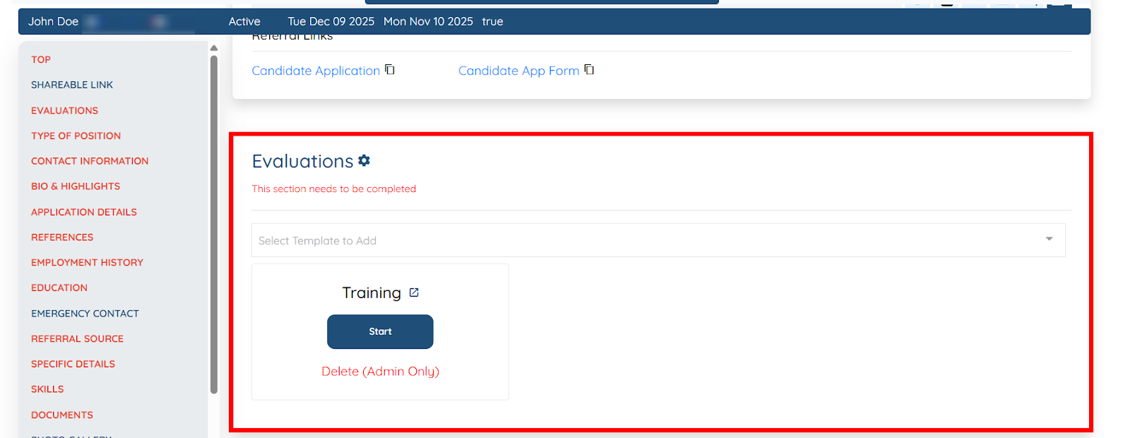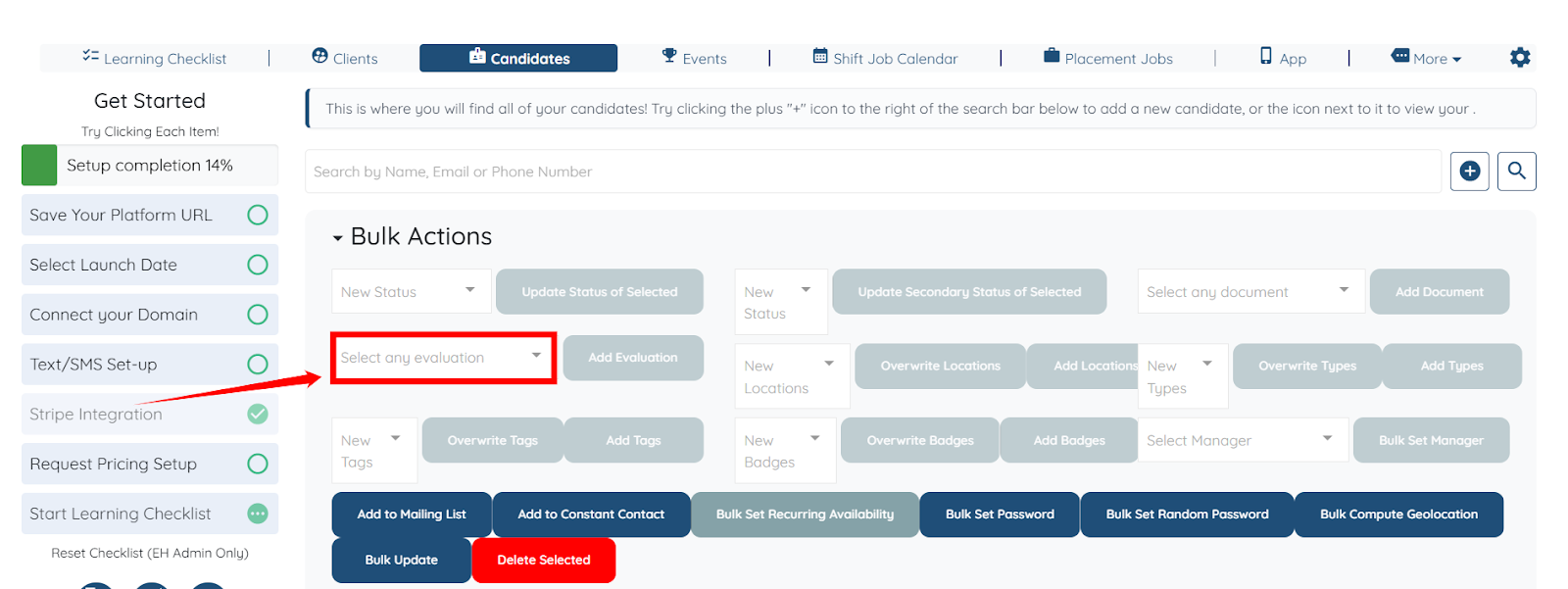 Step 4: Select the evaluation form that you want to add to the selected candidates.