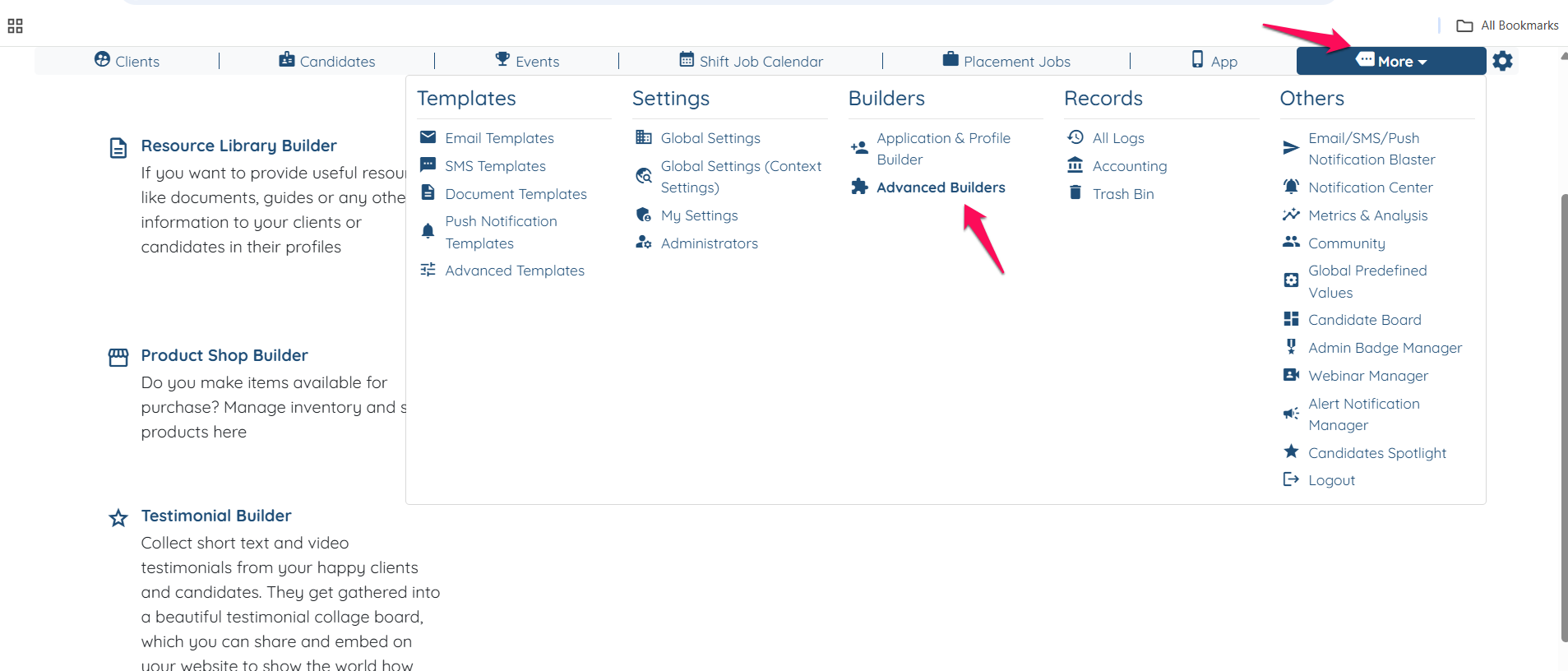 Go to more and Advance Builder.