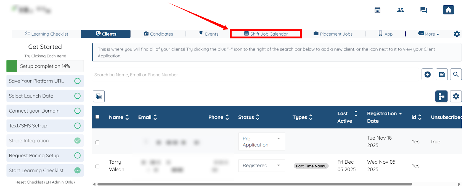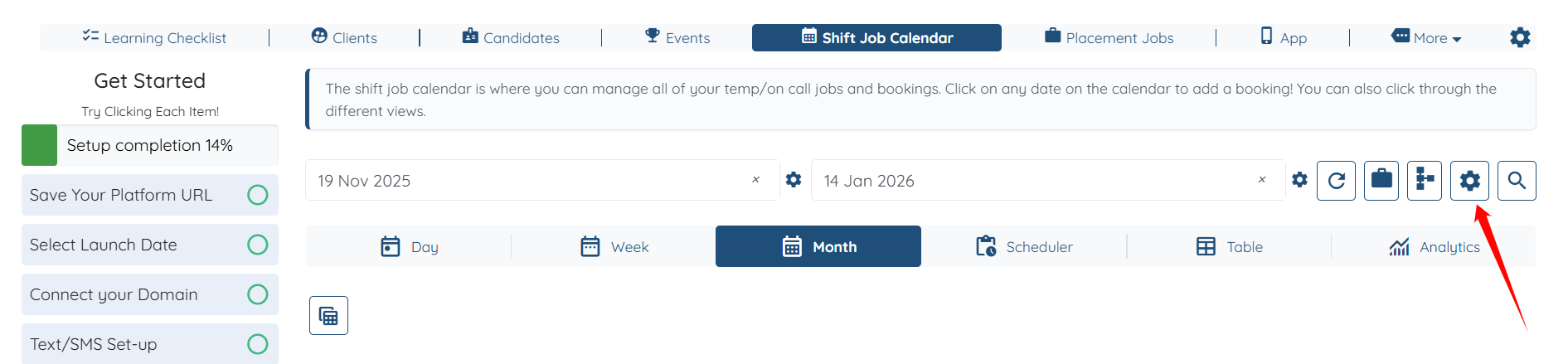 Step 1: Log in to your agent dashboard, then click Shift Job Calendar in the top navigation bar.