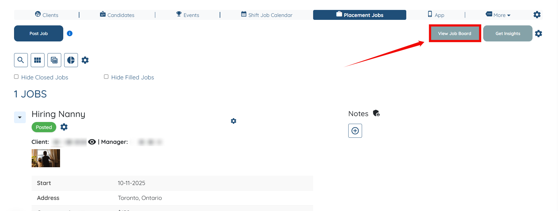 Step 1: Log in to your agent dashboard, and then navigate to Placement Jobs using the top navigation bar.