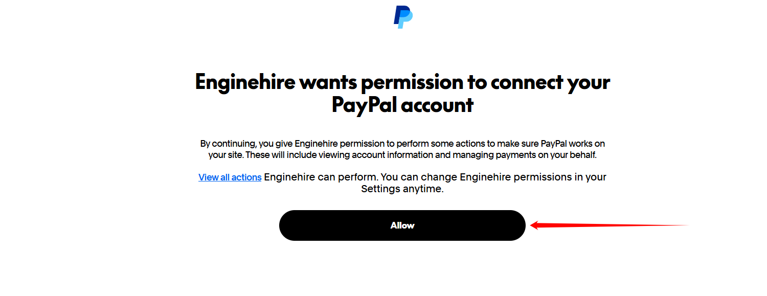 Step 8: Your Enginehire account will be successfully connected with PayPal. Click on the Return to Enginehire button to continue.