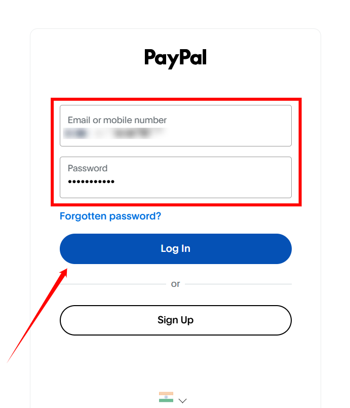 Step 6: Enter the email address or mobile number and password associated with your PayPal account, then click the Log In button.