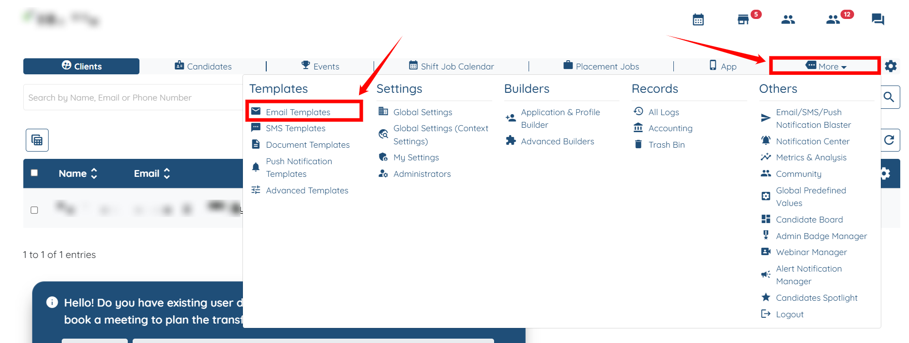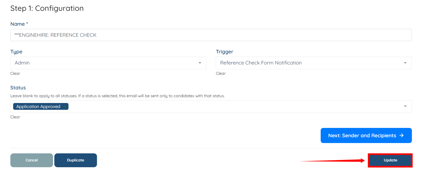 Step 2: Select the email template in which you want to trigger the notification as per the selected candidate status in the workflow.