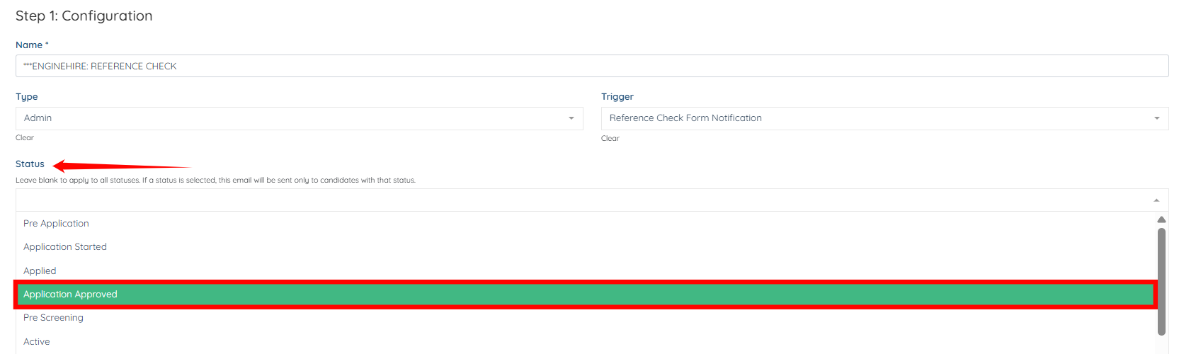 Step 5: Select the workflow status for which you want the email notification (chosen in the previous step) to be triggered.