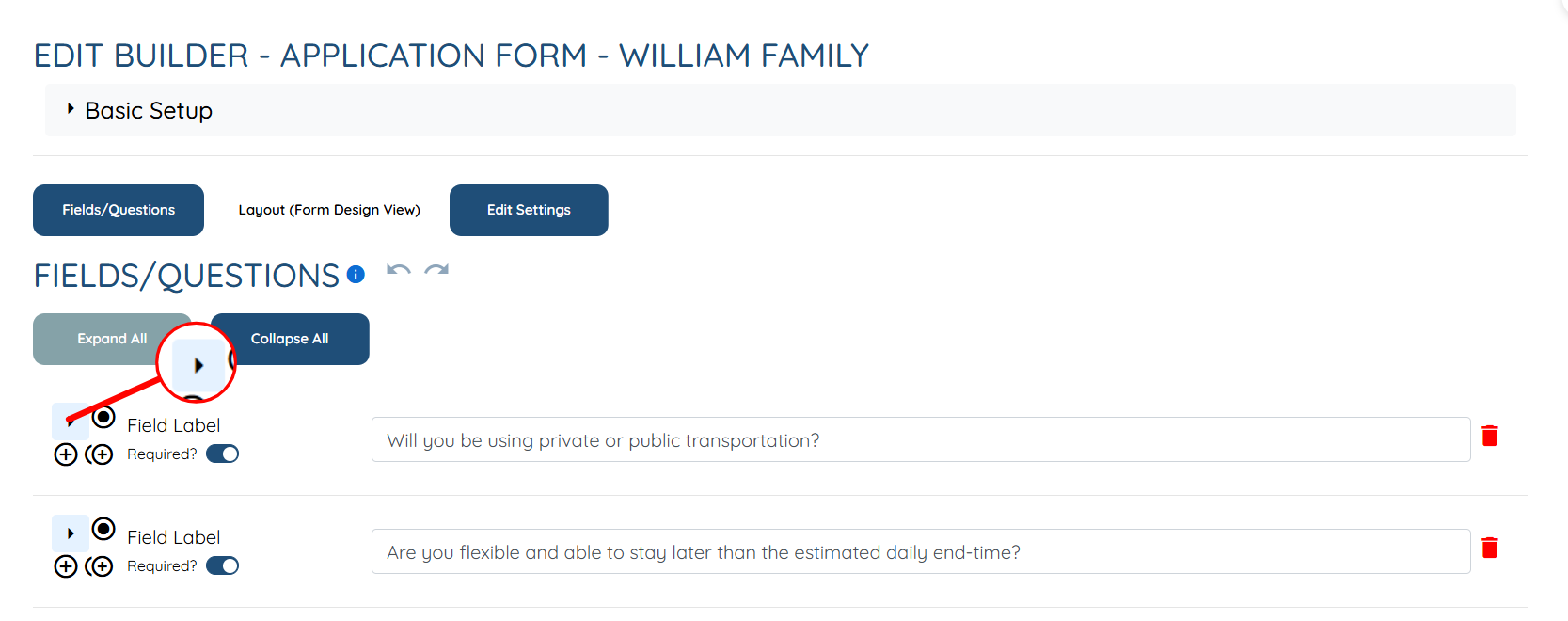 Step 4: Click the arrow shown in the screenshot below to expand the field (question) details.