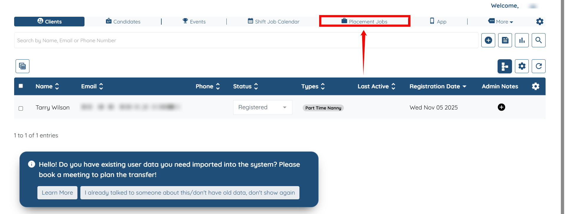 Step 1: Log in to your agent dashboard, and then navigate to Placement Jobs using the top navigation bar.