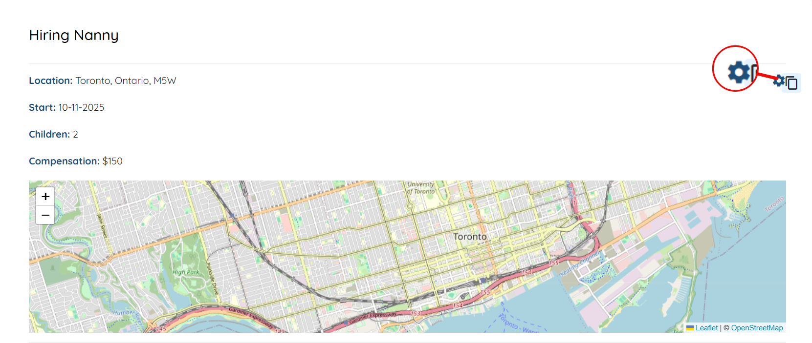 Step 4: Click on the Gear icon located on the right-hand side of the selected job.