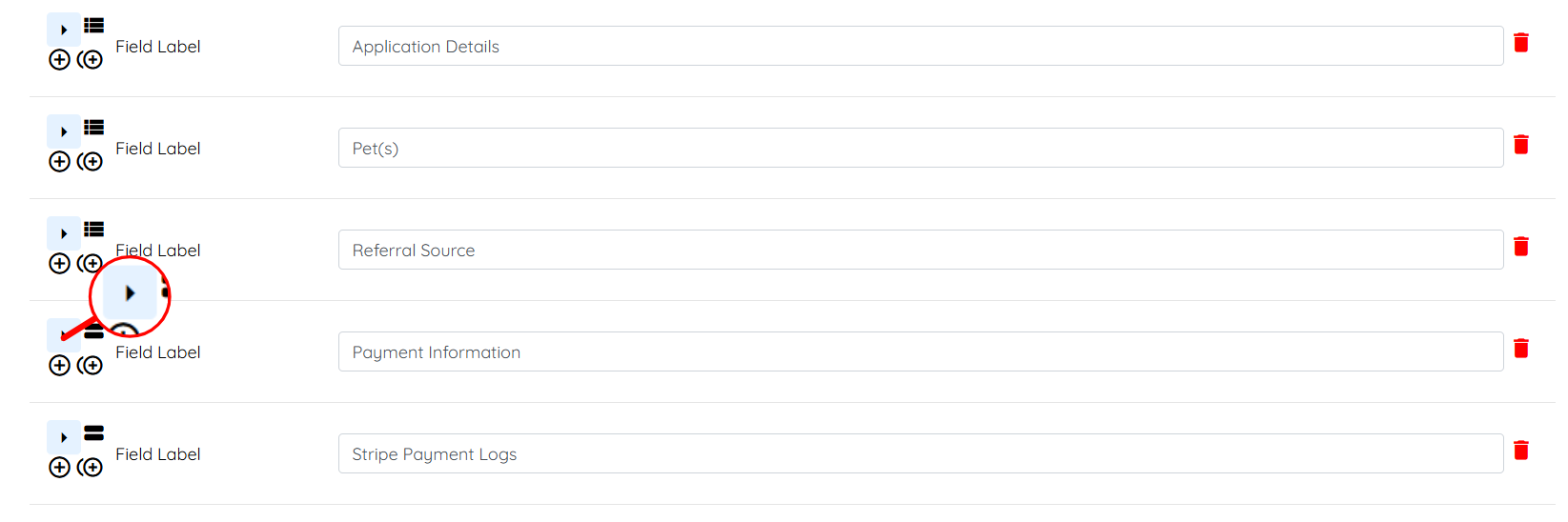 Step 3: Locate the Field configured with the preset section where you want to add a show condition to that preset section, and click the arrow shown in the screenshot below to expand its details.