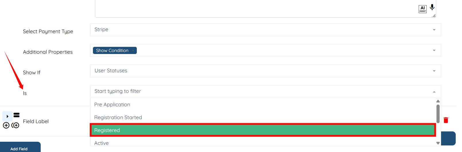 Step 6: In the Is dropdown, choose the specific status that makes the preset section visible.